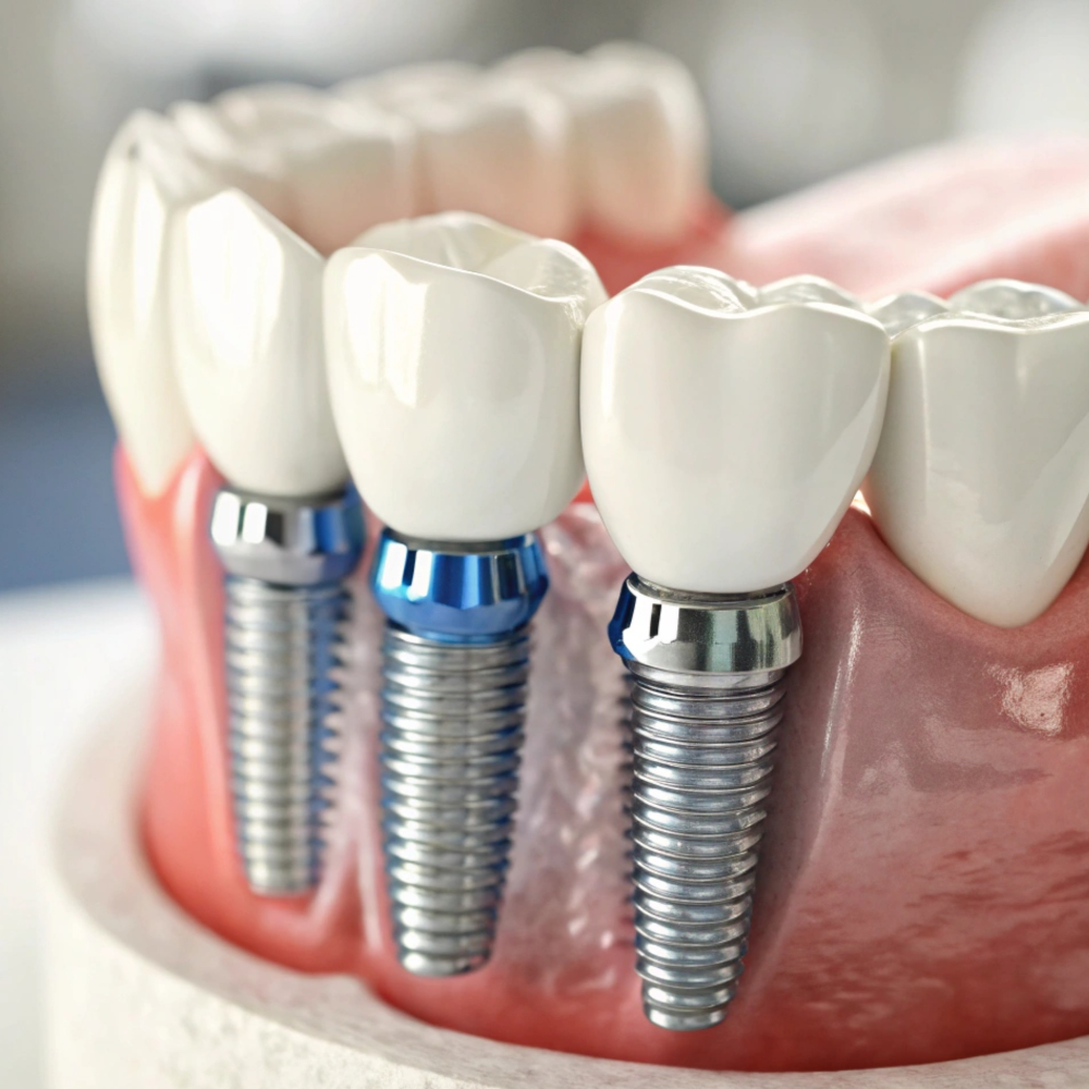 Multiple dental implants are a stable and long-term solution for patients who are missing more than one tooth. Instead of relying on traditional dentures or shaving down healthy teeth for a bridge, implants use small titanium posts placed into the jawbone to act as artificial roots. These posts support abutments, which in turn hold natural-looking prosthetic teeth.